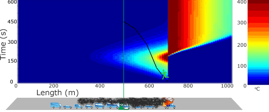 Large fires can be the result of the release and ignition of dangerous goods categorized in class 3 flammable liquids and class 4 flammable solids. Large fires are characterised by the fact that the smoke layer stratification is disrupted in a very short time from the initiation of the fire and the back-layering effect is very intense.