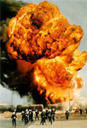 Large explosions can be the result of the release and ignition of the aforementioned dangerous goods carried in small quantities, such as in cylinders.